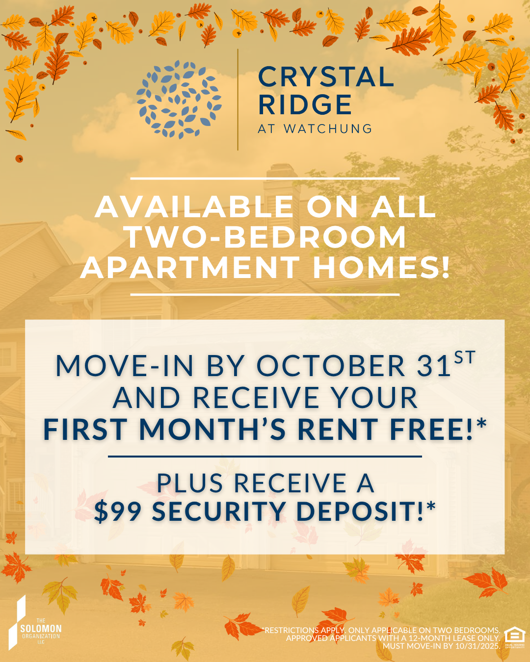Move-In By October 31st And Receive Your First Month's Rent Free! *Restrictions Apply.