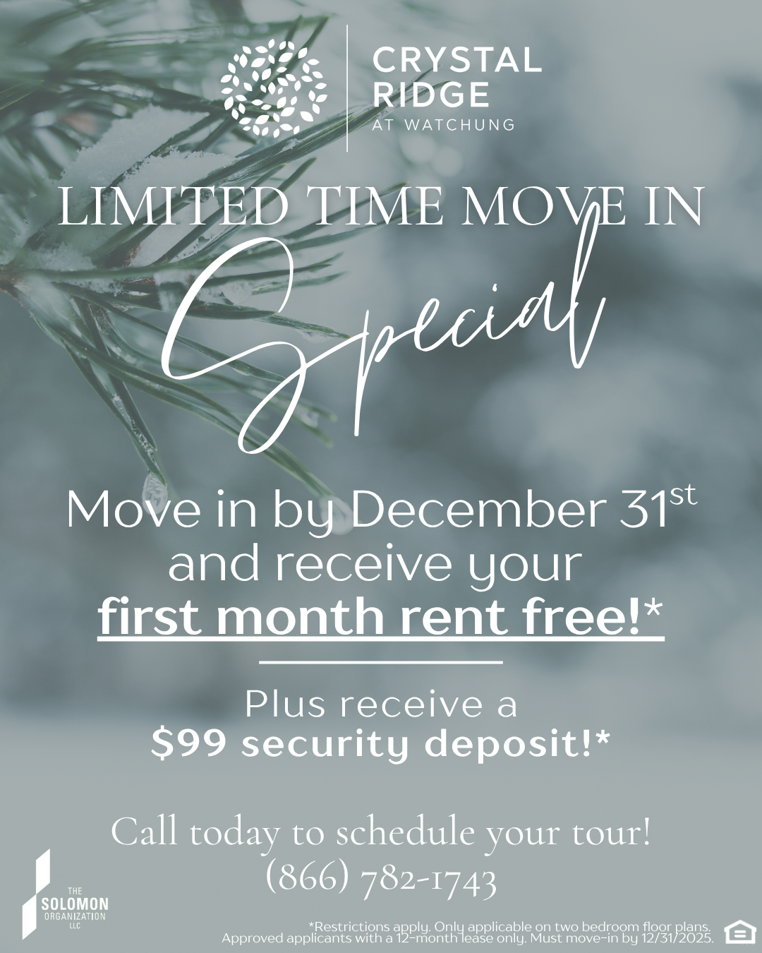 Move-In By December 31st And Receive Your First Month Rent Free! PLUS Receive A Security Deposit of $99.00! *Restrictions Apply.